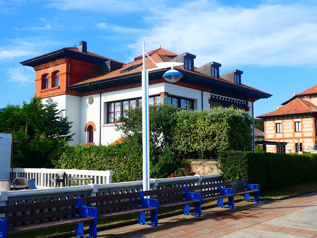 Admiramos en todo momento la fantástica vista del arenal hasta el Monte Somos, así como todas las casas en primera línea de playa, construidas sobre las parcelas que la Marquesa de Argüelles vendería a otros indianos, los más con fortuna hecha en Cuba y México, "convirtiendo a la villa en uno de los polos de atracción del veraneo a orillas del Cantábrico", tal y como dice también Alejandro Braña en El plácido verano de la marquesa, añadiendo además: