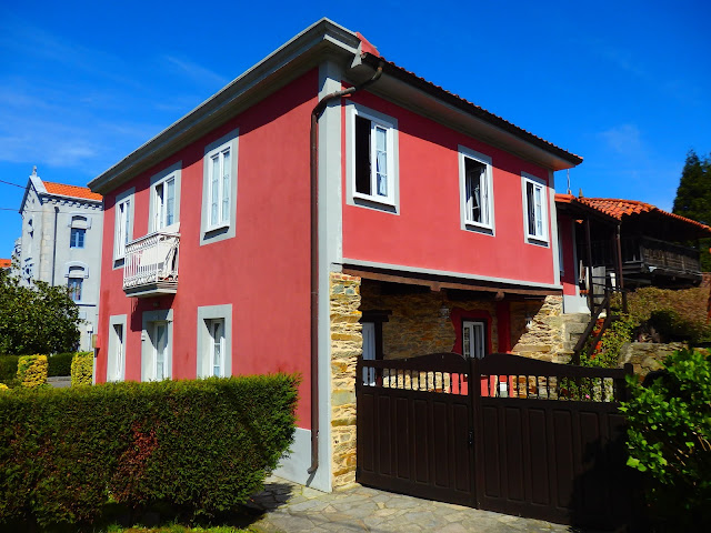 Las Escuelas Selgas, en concreto uno de sus grandes cuerpos laterales, se reconocen perfectamente desde aquí: una muy importante referencia del Camino Norte en Asturias