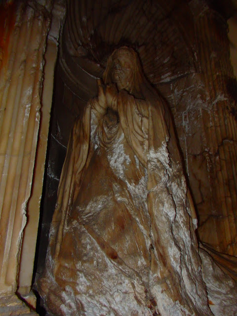 Aquí, y a continuación de la de Malleza, llegamos a la capilla de los Dolores, a la que se accede por este monumental pórtico de arco de medio punto y frontón triangular liso, sin elementos heráldicos ni filigrana alguna, una austeridad que se repite en el interior, donde hay un arcosolio de similares características. Observemos arriba la bóveda de cañón