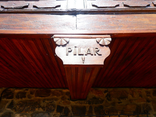 Pilar...". Ambos nombres entre medias rosetas labradas en la madera