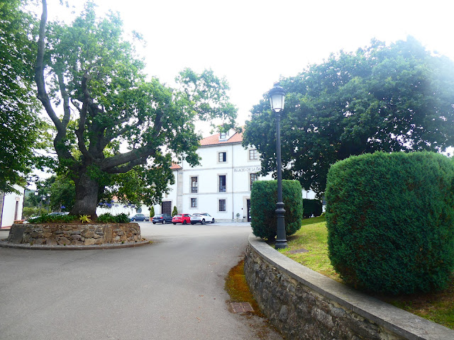 Sobre nosotros, algunas dependencias del Hotel Palacio de la Magdalena. Insistimos: al llegar a la N-632 HAY QUE IR A LA IZQUIERDA, fijémonos en las señales