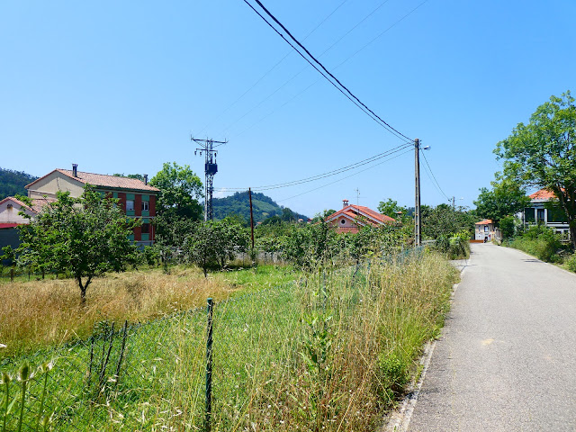 Una pequeña acera, estrecha apenas para una persona, se extiende entre las casas a la derecha, no obstante hay normalmente muy poco tráfico y, aunque pisemos asfalto, es un trayecto muy cómodo y agradable de caminar