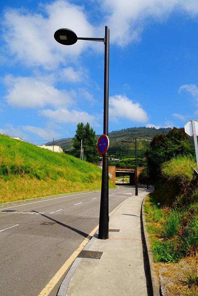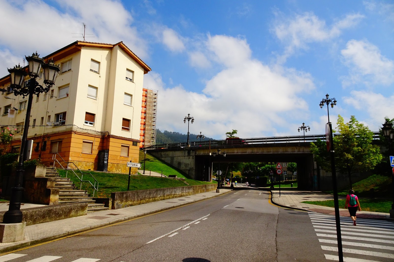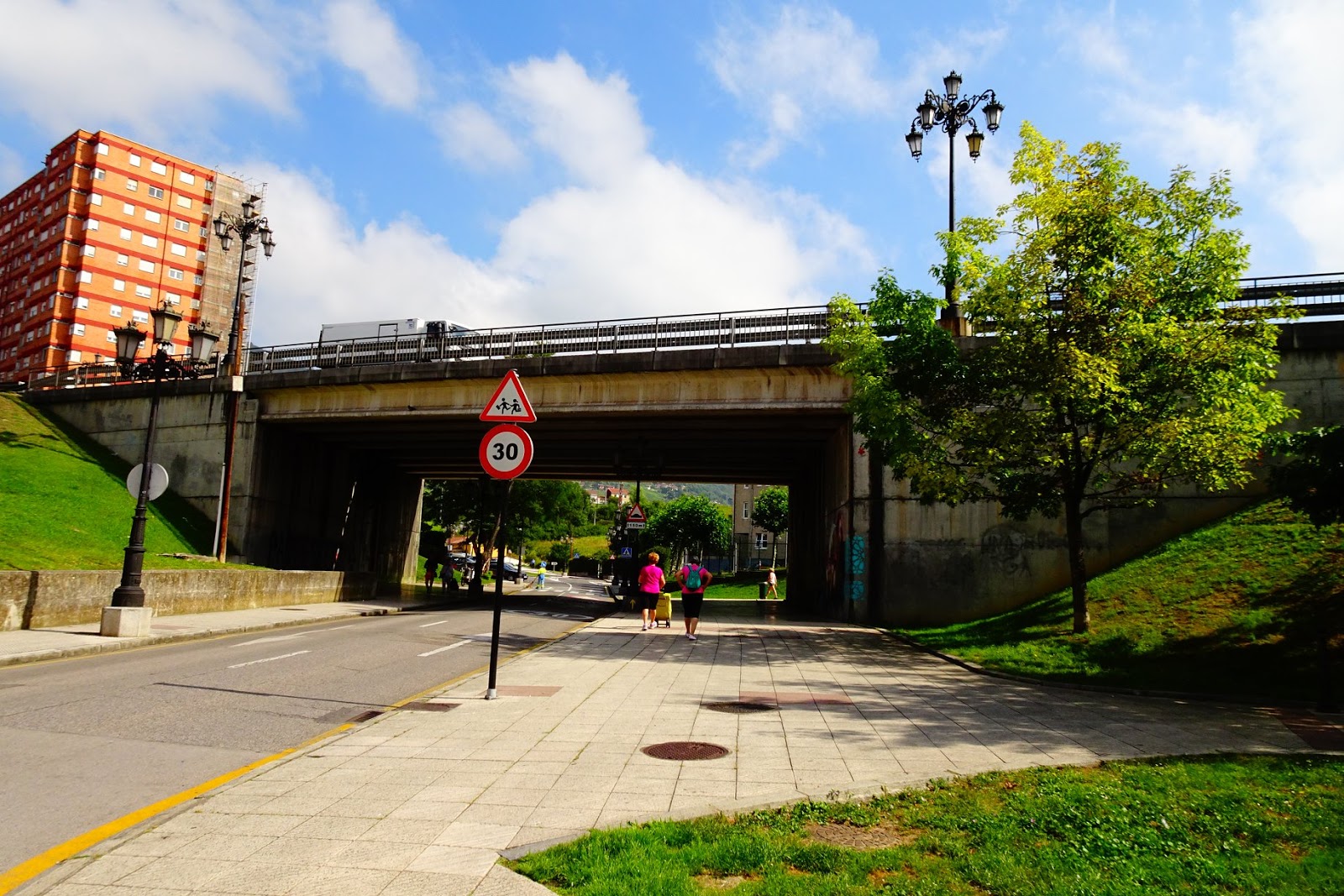 Siempre en subida, dejamos a la izquierda la glorieta delante de Las Torres de Pando y continuamos de frente hacia el puente de la autovía, saliendo poco a poco del casco urbano con La Cuesta Naranco ante nosotros