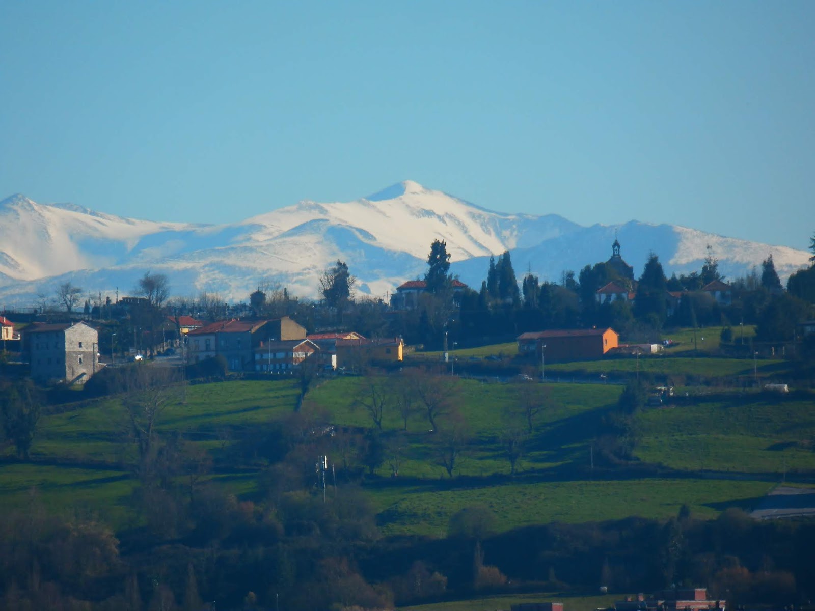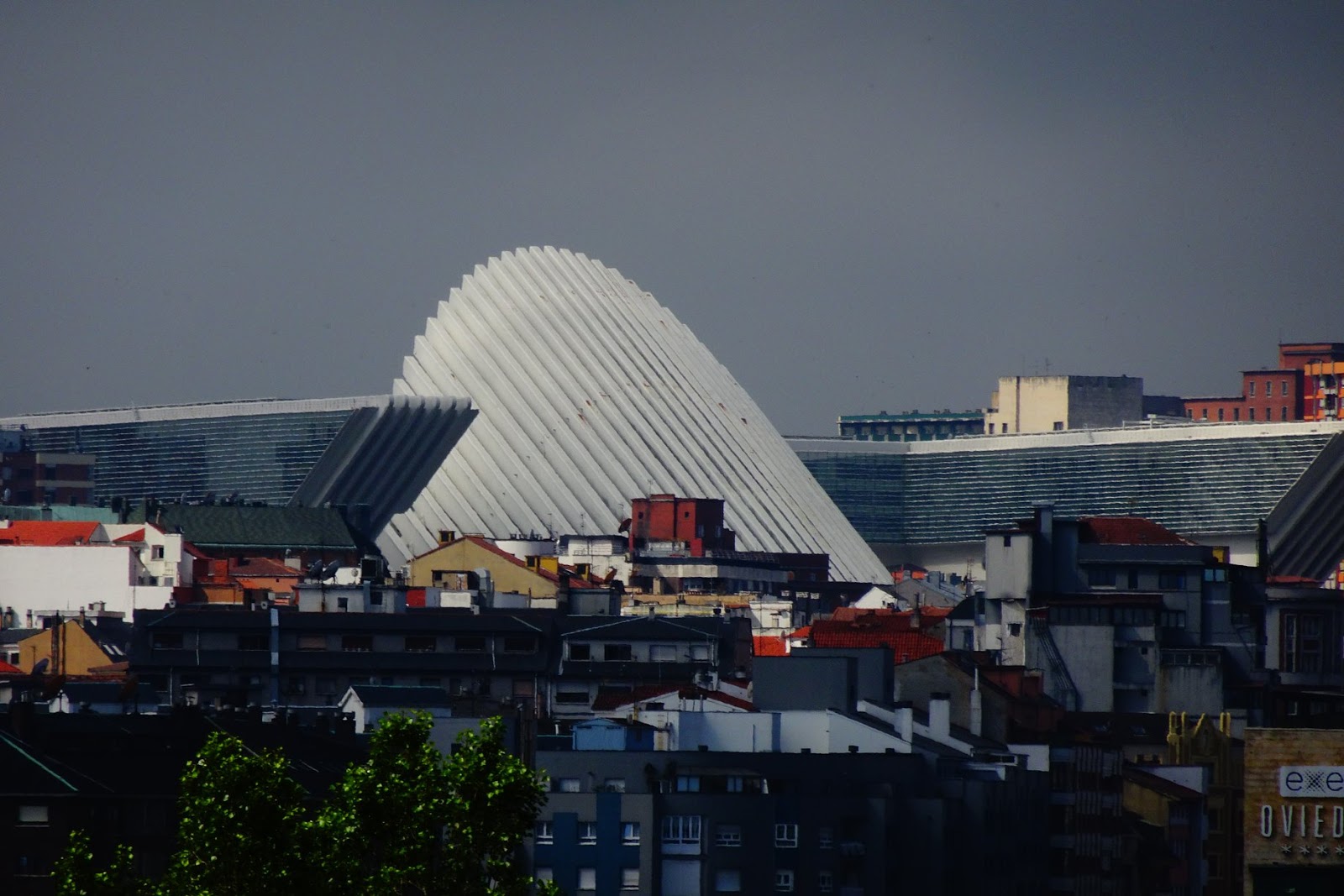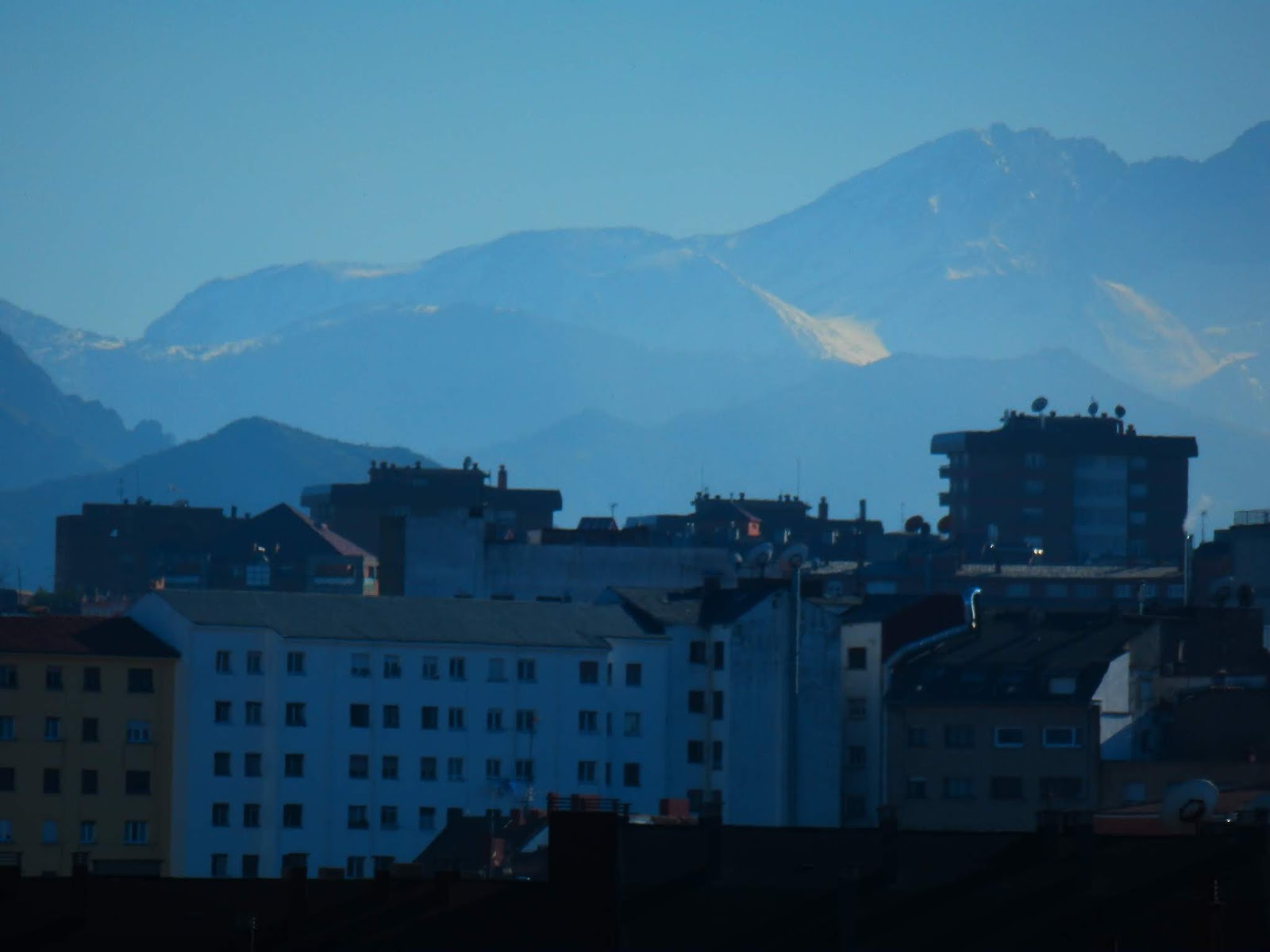 Los rascacielos del ensanche, la ciudad que creció desde su núcleo medieval hacia la Estación del Norte, miran al Monsacro o La Madalena, totémico monte donde se asegura se custodiaron las reliquias de Jerusalén que, huyendo durante años de invasiones, acabaron allí, guardadas por eremitas, hasta que Alfonso II las trajo a esta su capital a partir del año 791 en el que llegó, por segunda vez y tras no pocos avatares, al trono. Más lejos aún y nevado tenemos el Aramo, la gran montaña central asturiana, con los 1791 metros de altitud del Gamoniteiru como cota más alta, fácil de reconocer por su antena