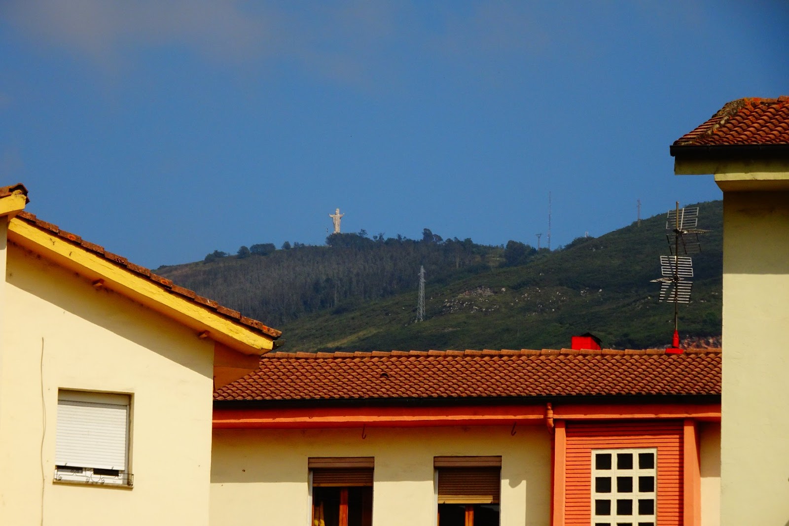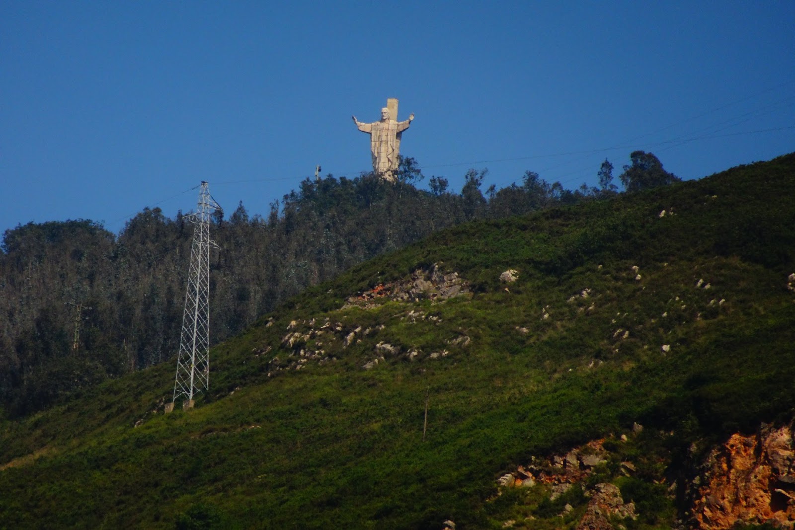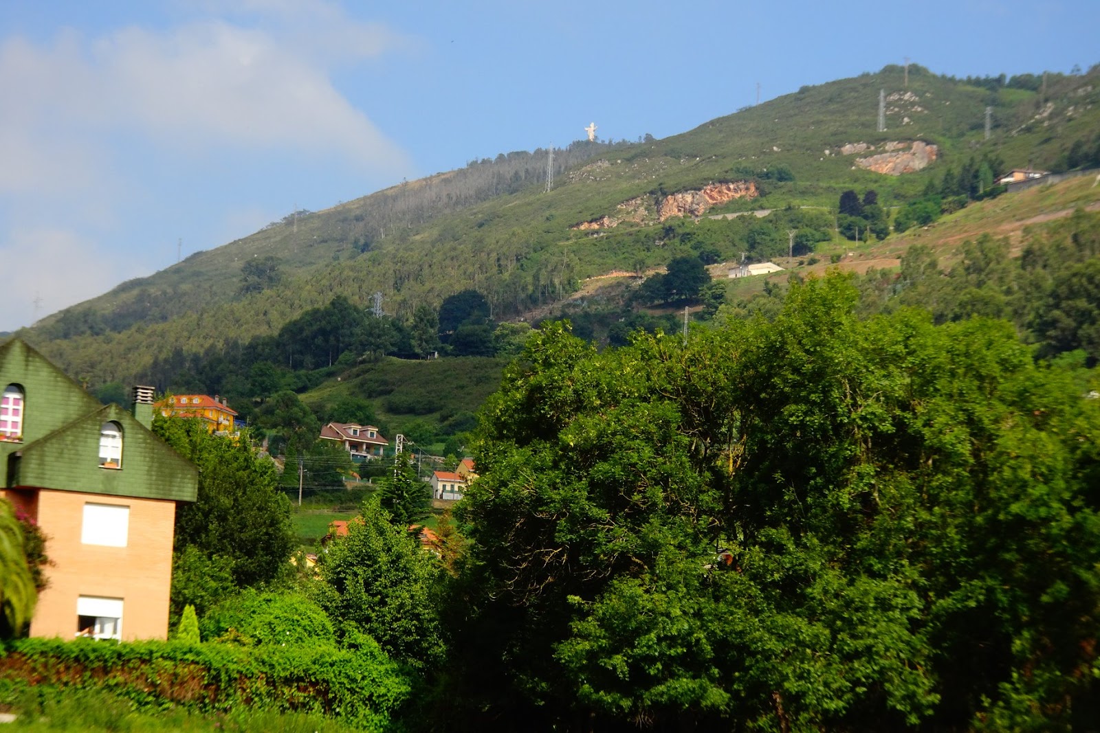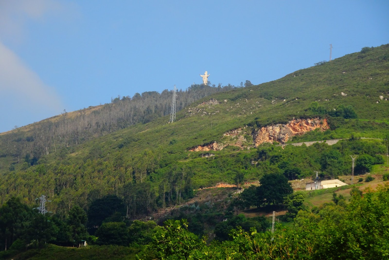 Volvemos a ver el icónico monumento al Sagrado Corazón, cuya explanada de aparcamientos no llegamos a ver tapada por los ocalitos plantados profusamente en la montaña, sobre todo en sus cotas más altas, al abandonarse los seculares usos ganaderos de sus antiguas majadas. El lugar es además meta una de las más festejadas etapas de la Vuelta Ciclista a España (y otras Como la Vuelta a Asturias)