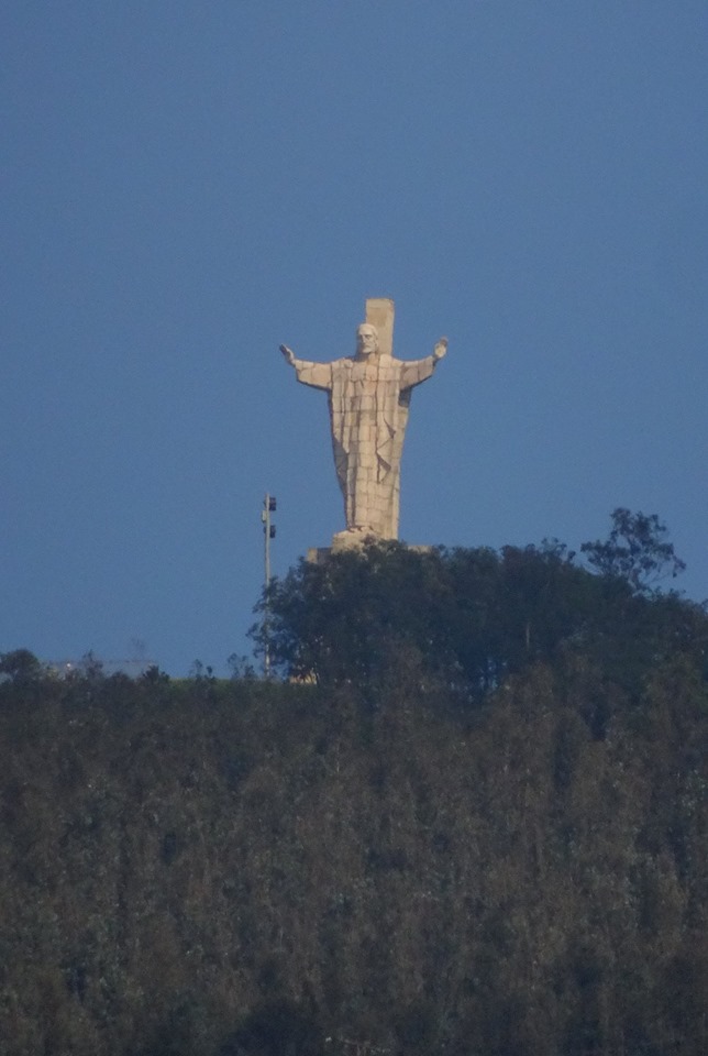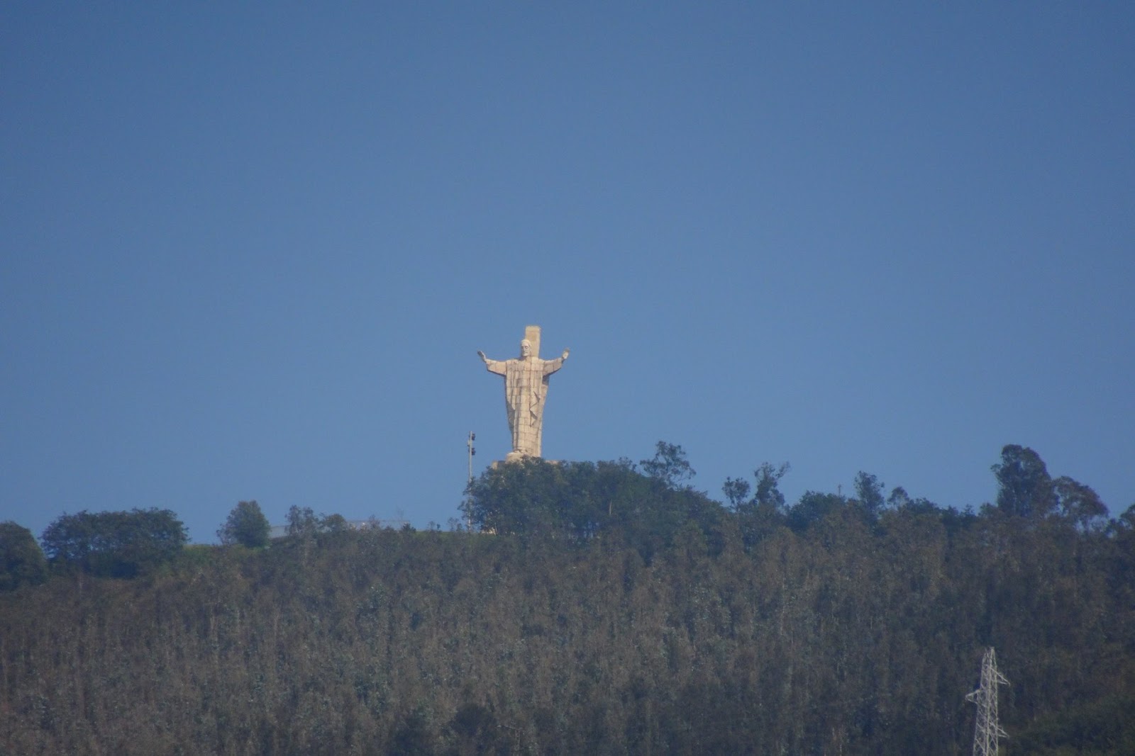 Dicha cima es muy fácilmente identificable por la gran escultura del Sagrado Corazón de Jesús que, con los brazos extendidos y mirando a la ciudad, emula a la existente en Río de Janeiro. De ella y su autoría nos dicen así en Wikipedia: