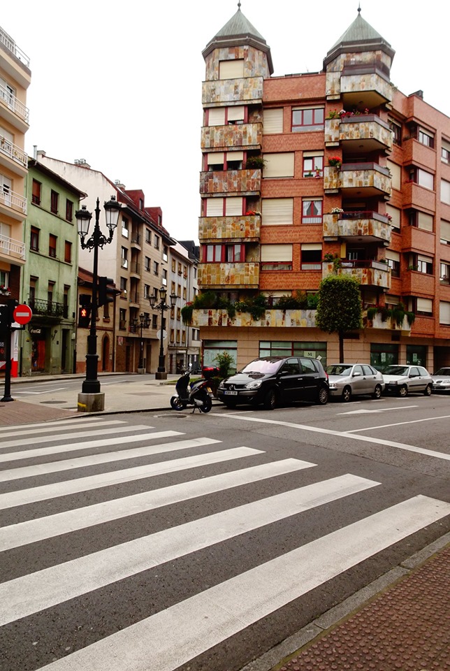 La avenida sube un poco de cuesta a partir de aquí, por lo que podríamos decir que nuestra ascensión al Naranco por este antiguo camino oficial 'desoficializado' comienza mismamente a la altura de las casas de Tocóte, de la que en Vivir Asturias hallamos esta descripción de su construcción, arquitectura y contexto social en el que fueron edificadas, al igual que otros conjuntos cercanos de la misma época: