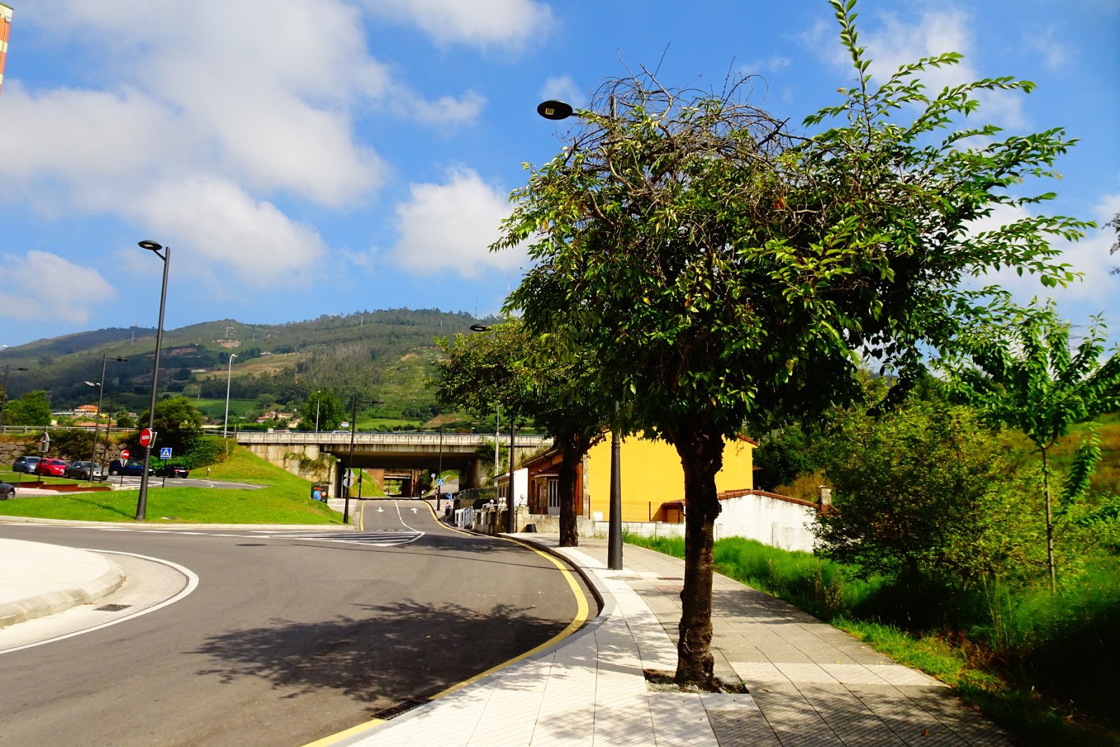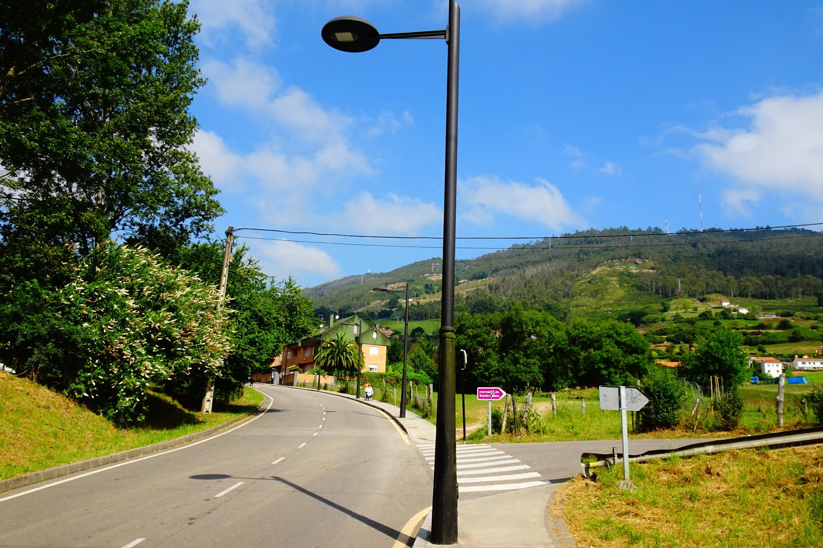 No obstante, hace unos años el Camino de Santiago del Norte no subía al Naranco por El Pontón de Vaqueros sino por Pando, un kilómetro y medio antes, cruzándose para ello la Avenida de Pumarín en este lugar para tomar la Avenida de Pando, a la izquierda, desde donde vemos al fondo la falda del Monte Naranco hacia la que nos encaminábamos ya. Para algunos estudiosos se trata de una ruta muy antigua, pues sería un viejo camino que iría a al antigua civitas astur-romana de Lucus Asturum, sita al otro lado de la montaña, como a lo largo de esta entrada de blog vamos a comprobar