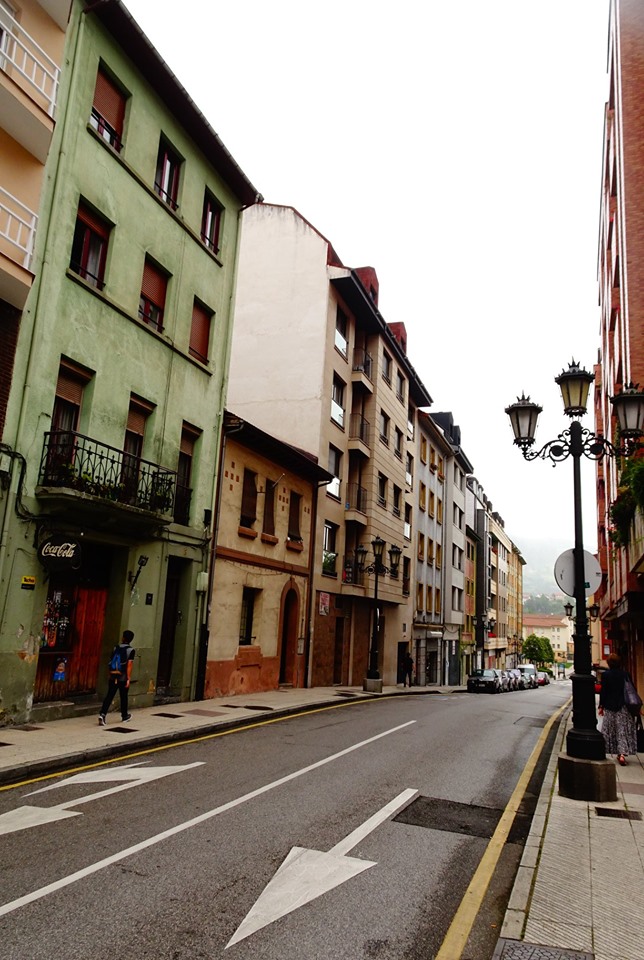 Fijémonos en las flechas amarillas pintadas en la pase de las farolas isabelinas tan características del paisaje urbano ovetense. Aunque el Camino oficial ya no pase por aquí y se hayan retirado hitos y mojones, es posible que sigamos viéndolas, si bien gastándose con el tiempo pues ya no se repintan
