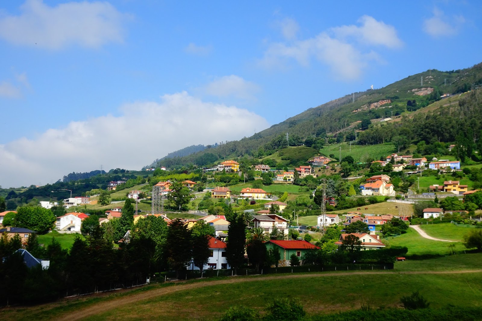 Es la bajada a Llaviada, parroquia de Villaperi, ya al norte del Monte Naranco, volvemos a ver en lontananza parte del sector norte del valle del Nora, de Llugones a Silvota, Pruvia, Soto Llanera y los montes de La Belga y La Barganiza