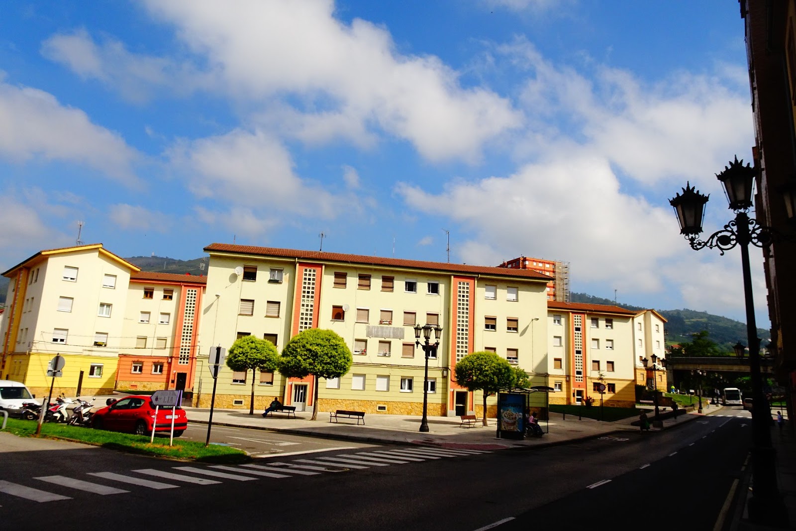 Dejamos a la izquierda la calle Maestras de la República y pasamos enfrente de estas casas, ejemplo de las reconstrucciones urbanísticas de la larga posguerra.En su obra Toponimia Asturiana. El porqué de los nombres de nuestros pueblos, el filólogo Xosé Lluis García Arias incide en la etimología del nombre del barrio: