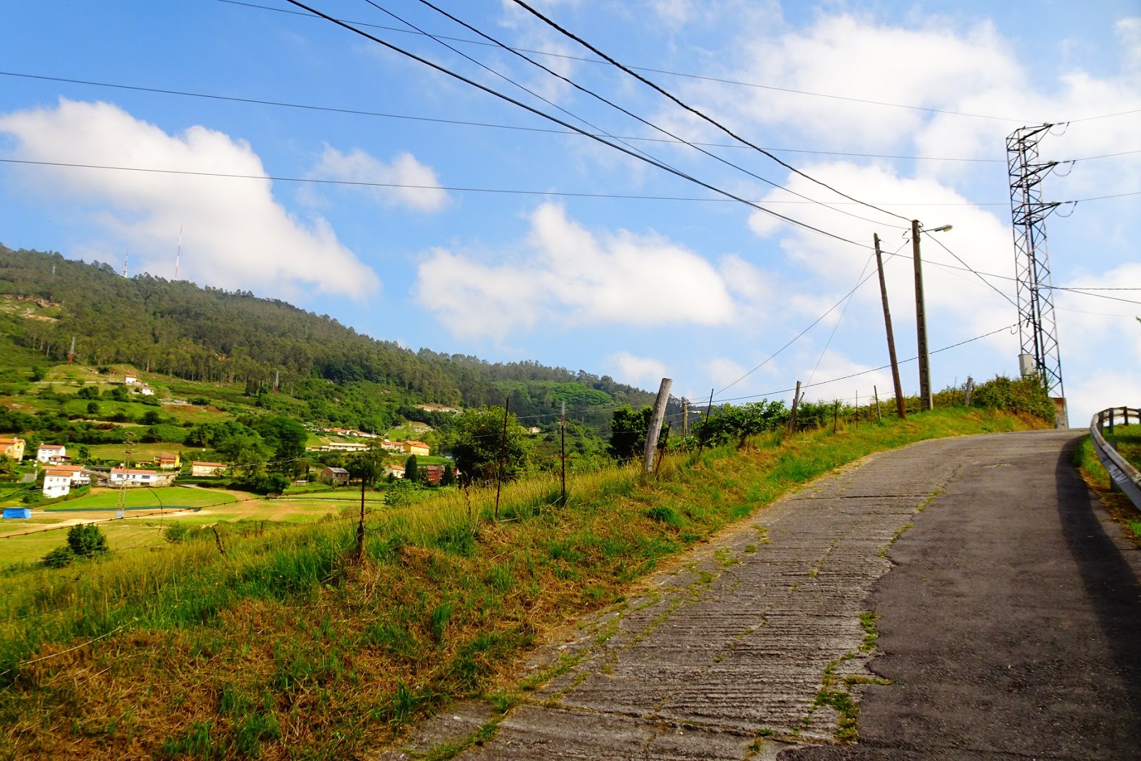 Y es que hay que tomar el Camino de la derecha, que empieza una bajada. Dado que ya no es trayecto xacobeo oficial es posible que tanto la flecha amarilla del mojón anterior, como la que hay en este poste, no se hayan repintado