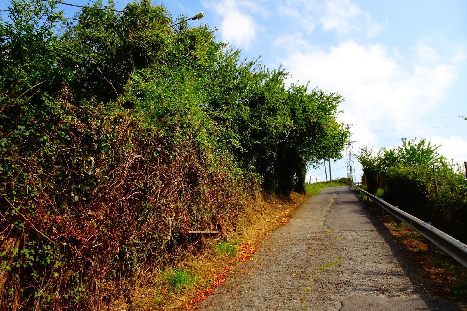 Rampa arriba, la sebe o seto silvestre separa el Camino de las fincas y nos impide ver durante unos metros La Cuesta Naranco con sus pueblos y lugares