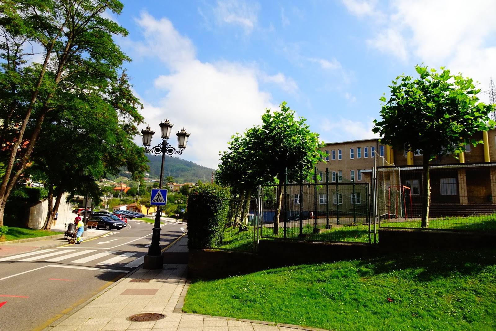 A la derecha, el Instituto de Educación Secundaria Pando, también llamado Villar-Pando, por el pequeño barrio o núcleo de El Villar, ubicado en las inmediaciones