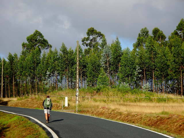 De nuevo seguimos una vía de servicio, subiendo por ewstos campos ahora plantados de eucaliptos