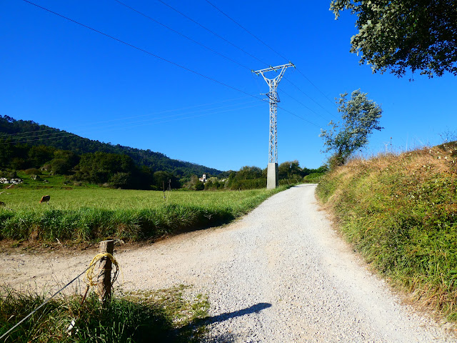 Esta Casa Conceyu de Buelna va a ser para nosotros la referencia para elegir entre el Camino de Santiago y la senda costera: si prefiriésemos continuar por el Camino de Santiago iríamos a la izquierda y saldríamos a la carretera, pues hay otro trayecto de unos 800 m por la N-634 hasta tomar el ramal que entra en Pendueles, la cabeza de la parroquia, en el lugar de Las Rozas