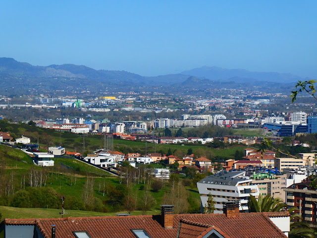 Aquí abajo, zona de crecimiento urbano, de bloques de pisos, de Ciudad Naranco a Villamaxil. Y un poco más allá, la zona de El Pontón de Vaqueros, por donde la ciudad de Oviedo/Uviéu se une, por Pando y La Cadellada, con La Corredoria, antiguo enclave rural del extrarradio oventese