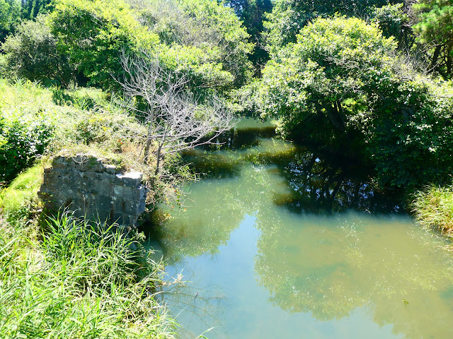 Pasamos el puente y seguimos hacia los aparcamientos veraniego en los prados llanos al pie de El Cuetu l'Aspa, por donde pronto subiremos a Berbes por sus antiguas explotaciones de fluorita, mineral que sigue siendo muy ansiado por los coleccionistas. Se encuentra en cristales cúbicos que pueden llegar a más de 5 cm de arista, color violeta intenso, traslúcidos o mismamente transparentes