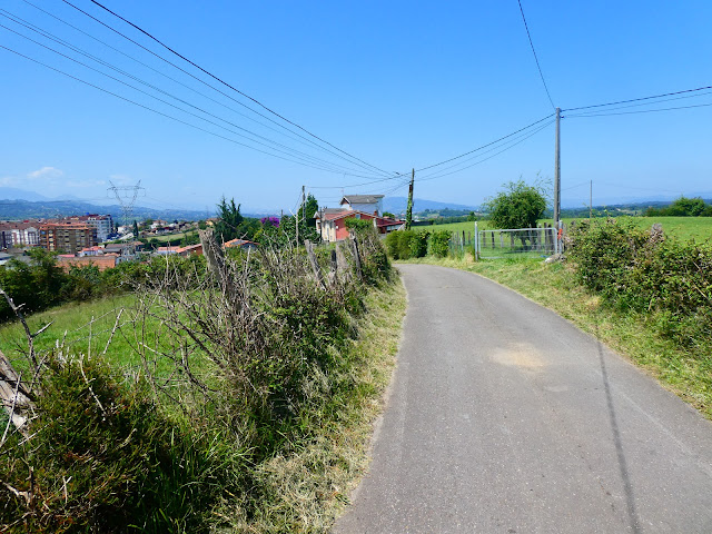Por aquí por estas casas hemos visto algunas flechas amarillas que nos permitirían llegar a Noreña en caso de seguir esa opción, vía L'Arrionda y La Pedrera, donde enlazarían con el otro camino en el que también vimos alguna flecha amarilla, bajando del puente de la Autovía Minera por La Zarragüela y El Molín. De allí saldríamos a la citada Carretera de Ferrera para dejarla en el ramal que, por El Palacio de Miraflores, entra en términos noreñenses bajando a La Campanica; allí se pasa bajo la Carretera Carbonera (AS-376) y el histórico Ferrocarril de Langreo para entrar en la villa por Les Carolines, al sur de la antigua Estación de Noreña