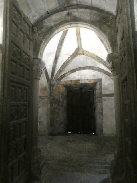 Hemos dado la vuelta completa a la iglesia y a sus tres naves y cabecera, ya estamos otra vez en la portada occidental, por su parte interior