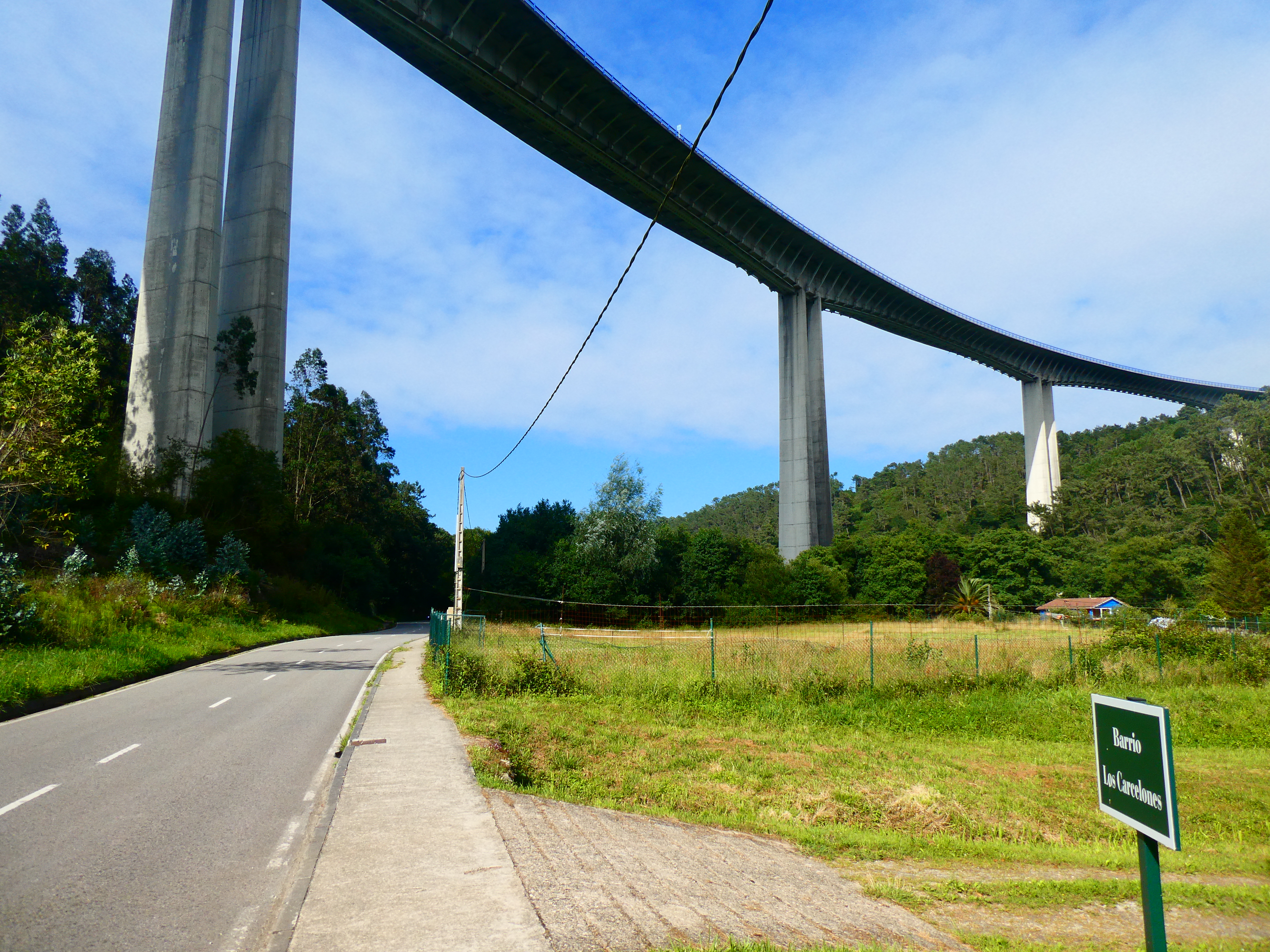 "El viaducto que salva el valle del río Esqueiro se construyó en 1995 dentro del plan de mejora integral del trazado occidental de la carretera de la costa en Asturias (N-632). Con 750 metros de longitud, sigue la tipología del puente de los Santos (tablero arqueado, pilas dobles y luces de 150m) , pero diferenciándose de este de su planta curva y su mayor altura que alcanza casi los 80 metros. Con el desdoblamiento de la carretera para la Autovía del Cantábrico (A-8), el viaducto fue ampliado en 2009, siguiendo el método del Puente de los Santos, a base de un nuevo alma central y una espina dorsal de acero anclada por debajo del tablero que soporta la losa ampliada, añadiendo además un mayor refuerzo longitudinal y transversal debido a la directriz curva y su altura"