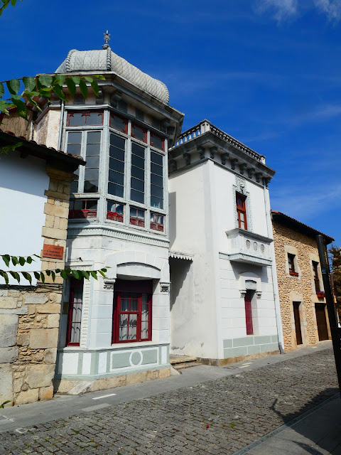 Hasta la vieja iglesia parroquial de Santa María de Colombres, al otro lado de la plaza, fue considerablemente reformada y ampliada a finales del siglo XIX por iniciativa de los indianos. A su izquierda baja el Camino y a su derecha se entra en la fastuosa Quinta Guadalupe, que hemos visitado en la entrada de blog correspondiente al tramo anterior, cuando entrábamos a Colombres por El Cantu y la calle Lamadrid