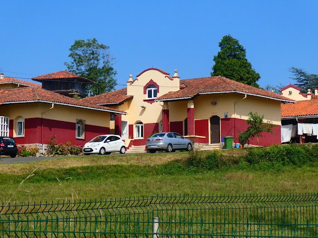 La del fondo es la que fue el Colegio de las Esclavas del Inmaculado Corazón de María, de la que hablamos anteriormente, entre las dos baja el Camino de Santiago. Más antiguamente existió un colegio de monjas dominicas en el barrio de Sorriberu, donde estudió el famoso médico nutricionista colungués