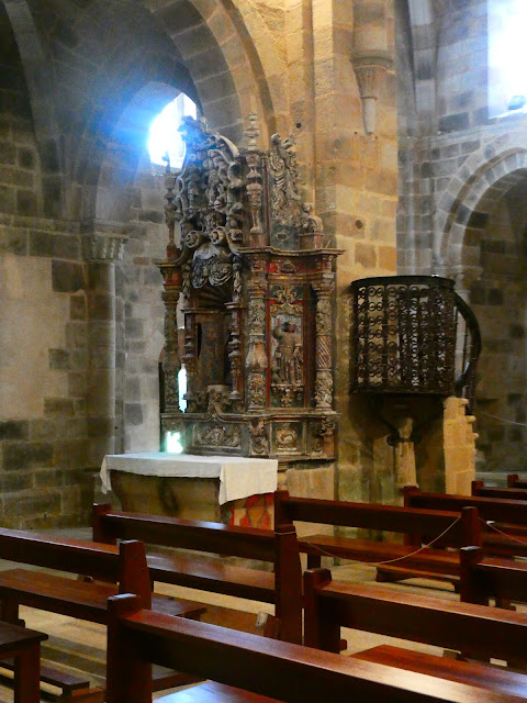 Tras una primera toma de contacto con el lugar y su historia, accediendo primeramente desde el Camino a los edificios monacales construidos entre los siglos XVII y XVIII sobre la primigenia fundación medieval, nos dirigíamos al mencionado albergue de peregrinos de paso que recorríamos la plaza del monasterio y nos acercábamos a la entrada de la iglesia de Santa María, la cual mira a esa plaza donde también está la hospedería, donde veíamos sus magníficas portadas románicas occidentales así como una tercera, barroca, todo ello bajo el pórtico, construido en 1687 que, como los demás edificios adyacentes, camufla su estructura medieval