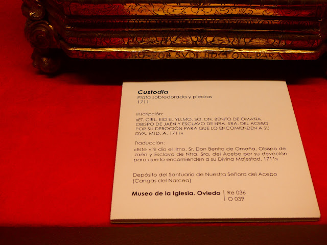 Tras la visita a la Cámara Santa, donde se guardan algunas de las más preciadas reliquias de la cristiandad, aquellas que dieron origen al dicho que afirma que "quien va a Santiago y no al Salvador, visita al criado y olvida al señor", proseguimos nuestro recorrido por el interior de esta catedral, San Salvador de Oviedo/Uviéu, a la que dedicamos varias entradas de blog, acercándonos ahora a su museo catedralicio, el Museo de la Iglesia de Asturias (MIA), contemplando numerosos tesoros históricos y artísticos. De él tenemos una muy buena relación de piezas y fotografías en la magnífica web Sancta Ovetensis