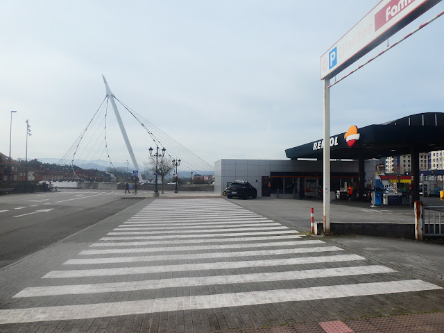 El Camino sigue a la derecha, por la citada calle Cudillero, pero fijémonos a la izquierda en los edificios de la calle Periodista Cepeda, al otro lado del puente